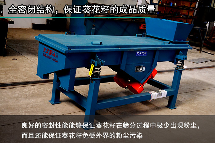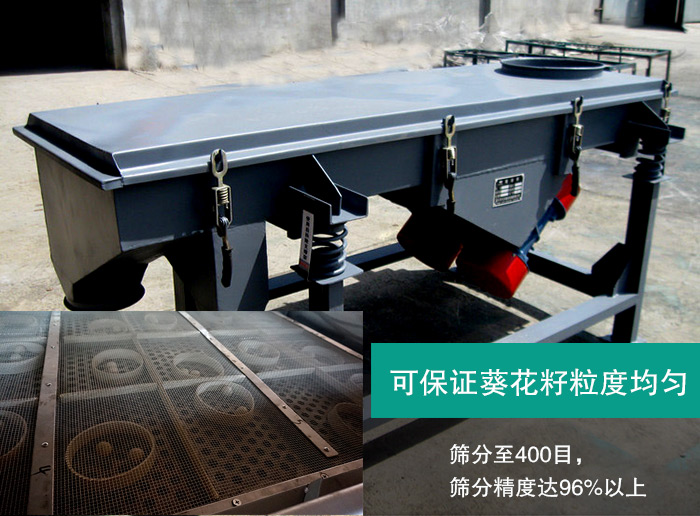 直線振動篩可以篩分至400目,篩分精度達96%以上,篩選精度高,可以保證葵花籽除雜效果更好,粒度更加均勻。