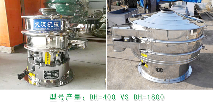 小產(chǎn)量選DH-400型振動篩:篩分直徑為350m/m,轉(zhuǎn)速1440r/min,功率為0.18kw,每小時(shí)處理量為80kg-150kg。
