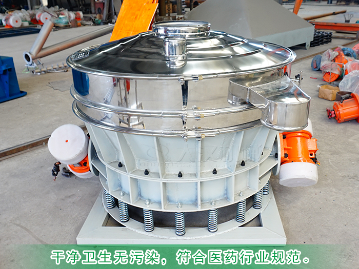 淀粉又叫做團(tuán)粉不溶于水,在和水加熱至60℃左右時(shí)則糊化成膠體,不容易被普通振動(dòng)篩篩分,下面小編就為大家介紹一款專(zhuān)業(yè)的淀粉篩分設(shè)備-不銹鋼直排振動(dòng)篩: