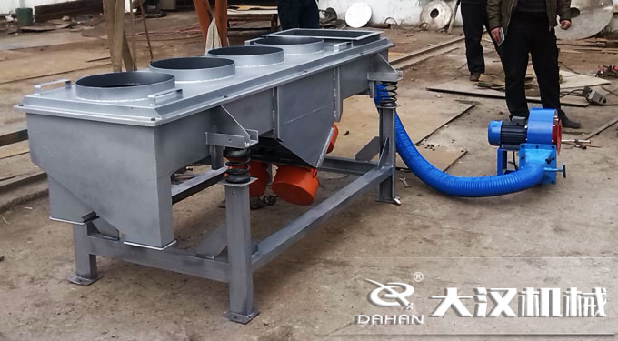 大漢機(jī)械在原有的基礎(chǔ)上加裝風(fēng)機(jī),可用于高溫度物料,在進(jìn)行篩分的同時(shí)也可以進(jìn)行散熱處理,防塵蓋上留有圓孔,目的也是幫助其更好的降溫,既有效的進(jìn)行了防塵,也可以加快降溫的速度。