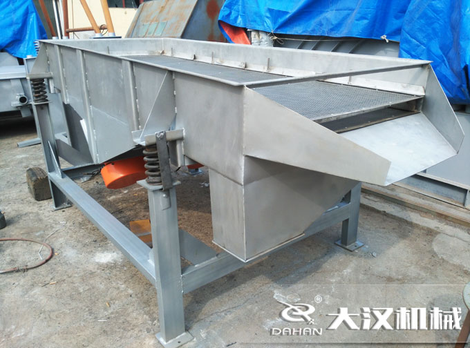 DZSF系列直線振動篩(長方形振動篩)為雙振動電機驅(qū)動。當(dāng)兩臺振動電機做同步、反向旋轉(zhuǎn)時,其偏心塊所產(chǎn)生的激振力在平行于電機軸線的方向相互抵消,在垂直于電機軸的方向疊為一合力,因此篩機的運動軌跡為一直線。兩電機軸相對篩面在垂直方向有一傾角,在激振力和物料自重力的合力作用下,物料在篩面上被拋起跳躍或向前作直線運動,從而達到對物料進行篩選和分級的目的。適用于粒度在0.074―5mm,含水量小于7%,無粘性的各種干式粉狀或顆粒狀物料的篩分。大給料粒度不大于10mm