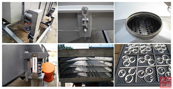 6、減振彈簧:阻止振動(dòng)傳給地面,同時(shí)支持篩箱的全部重量,安裝時(shí),彈簧必須垂直與地面。