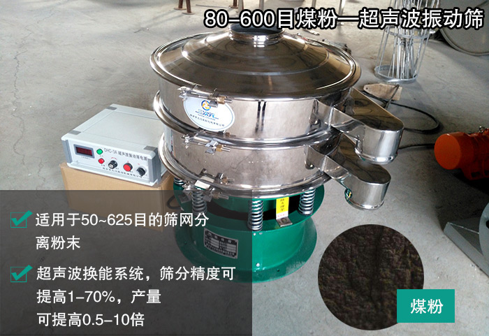 超聲波振動篩在普通旋振篩基礎(chǔ)上加裝了一套超聲波裝置,可將各種常用的低頻電能轉(zhuǎn)化為高達(dá)38KHz的高頻電能,再通過超聲換能器,終得到一個38KHz機(jī)械振動,以此進(jìn)行高效的篩分和清網(wǎng)工作,有效解決了難篩物料因粘附性、高靜電、易團(tuán)聚等因素引起的堵網(wǎng)問題,特別適合煤粉的篩分。