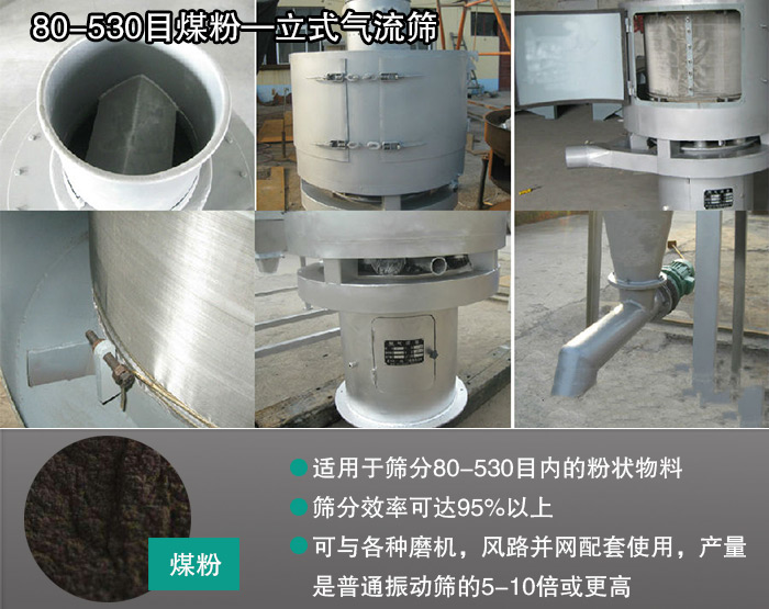 立式氣流篩適用于篩分80-530目內(nèi)的粉狀物料,產(chǎn)品細(xì)度,無超級混級現(xiàn)象,篩分效率可達(dá)95%以上,篩分程序在負(fù)壓半循環(huán)狀態(tài)下進(jìn)行,還可與各種磨機(jī),風(fēng)路并網(wǎng)配套使用,產(chǎn)量是普通振動篩的5-10倍或更高。